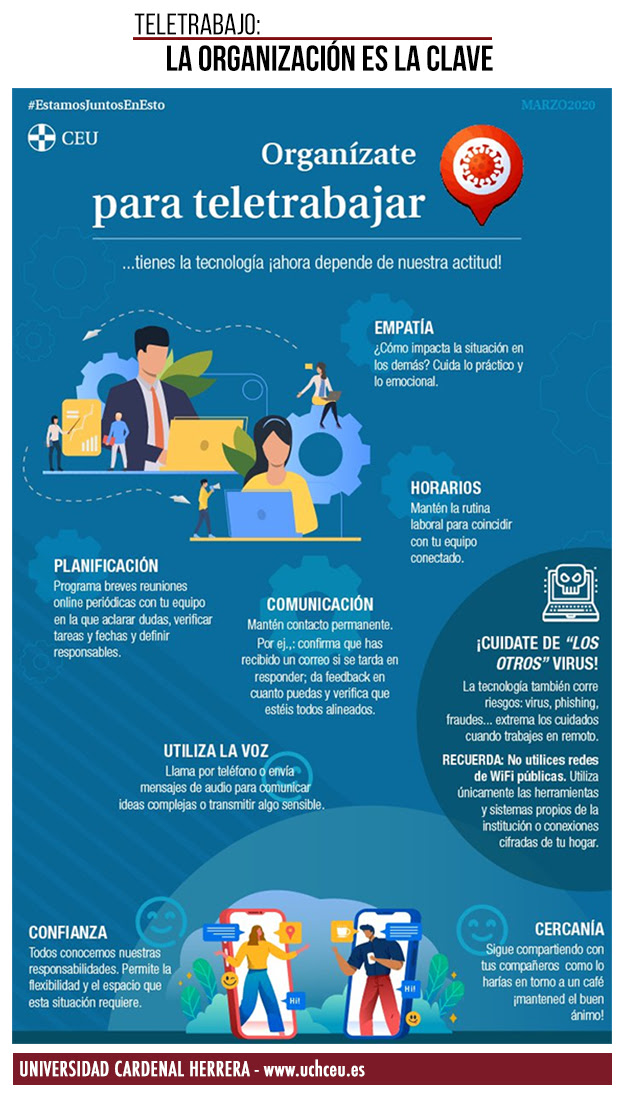 Además os dejamos un par de imágenes que pueden ayudarnos con recomendaciones que podemos emplear si estamos haciendo TELETRABAJO o aprovechando para ESTUDIAR EN CASA...